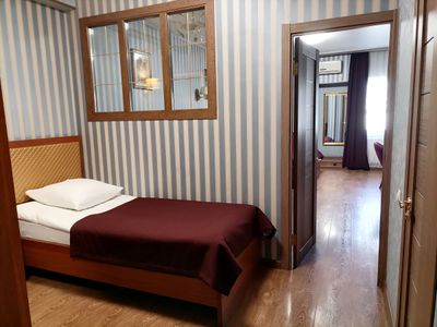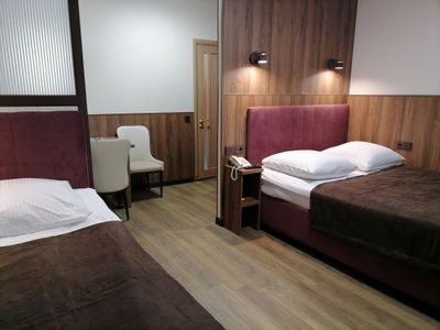 Брали номер на переночевать перед утренним авиарейсом. Так как гостиница расположена рядом с центром, успели от автовокзала дойти ногами, и после размещения погуляли по центру. Напротив ресторан, в самой гостинице ресторан, где нас покормили заказными завтраками. Плюсом было то, что в 6:30 мы могли уже сесть и поесть. Номера чистые, ремонт новый, в каждой комнате телевизор. Кондиционер есть в номере, холодильник, микроволновка, чайник. Такси к гостинице приезжают минут за 10. Всё понравилось.